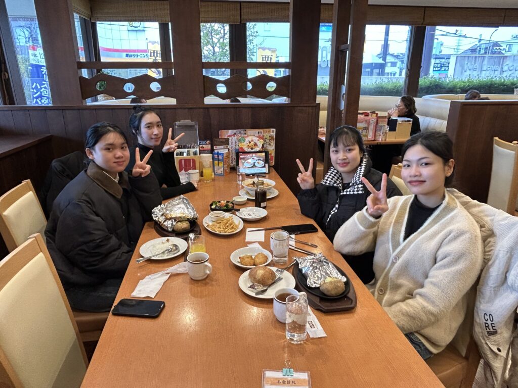 寒い日に雪が降りましたから早く出発しました。試験場に着いた後時間はまだあったから最後まで粘って勉強した4人は本当に頑張り屋さんでした。結果は全員合格です、おめでとうございます。今回の結果で技能実習の2号になれ、日本で安心して働けますね。今後沢山楽しんでくださいね。